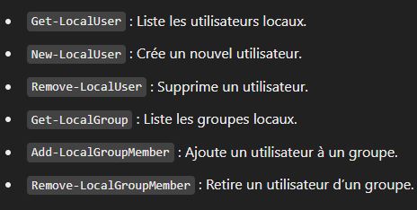 - Scripts et Automatisation : Écriture de fichiers .ps1 pour automatiser des tâches répétitives.