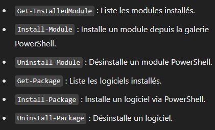 - Modules et Extensions : Installation et utilisation de modules externes via Install-Module.